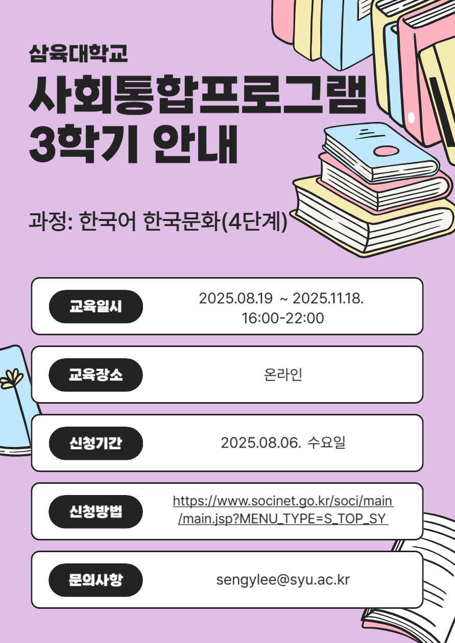 2025학년도 사회통합프로그램 3학기 수강신청일이